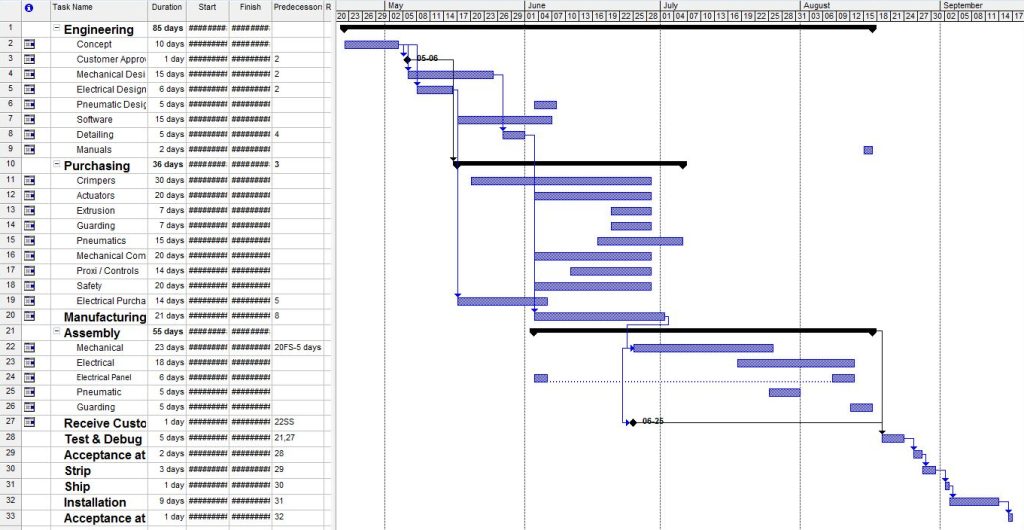 Delivering field-proven approaches and production plans arriving at comprehensive solutions. Consultation with end-users, staff, suppliers and OEMs, to provide infrastructure design, scheduling, critical path, integration and maintenance of project details for part development, operator training, and service work with optimum efficiency. Liaising with purchasing parties and out-sourced engineering to keep the client up-to-date.